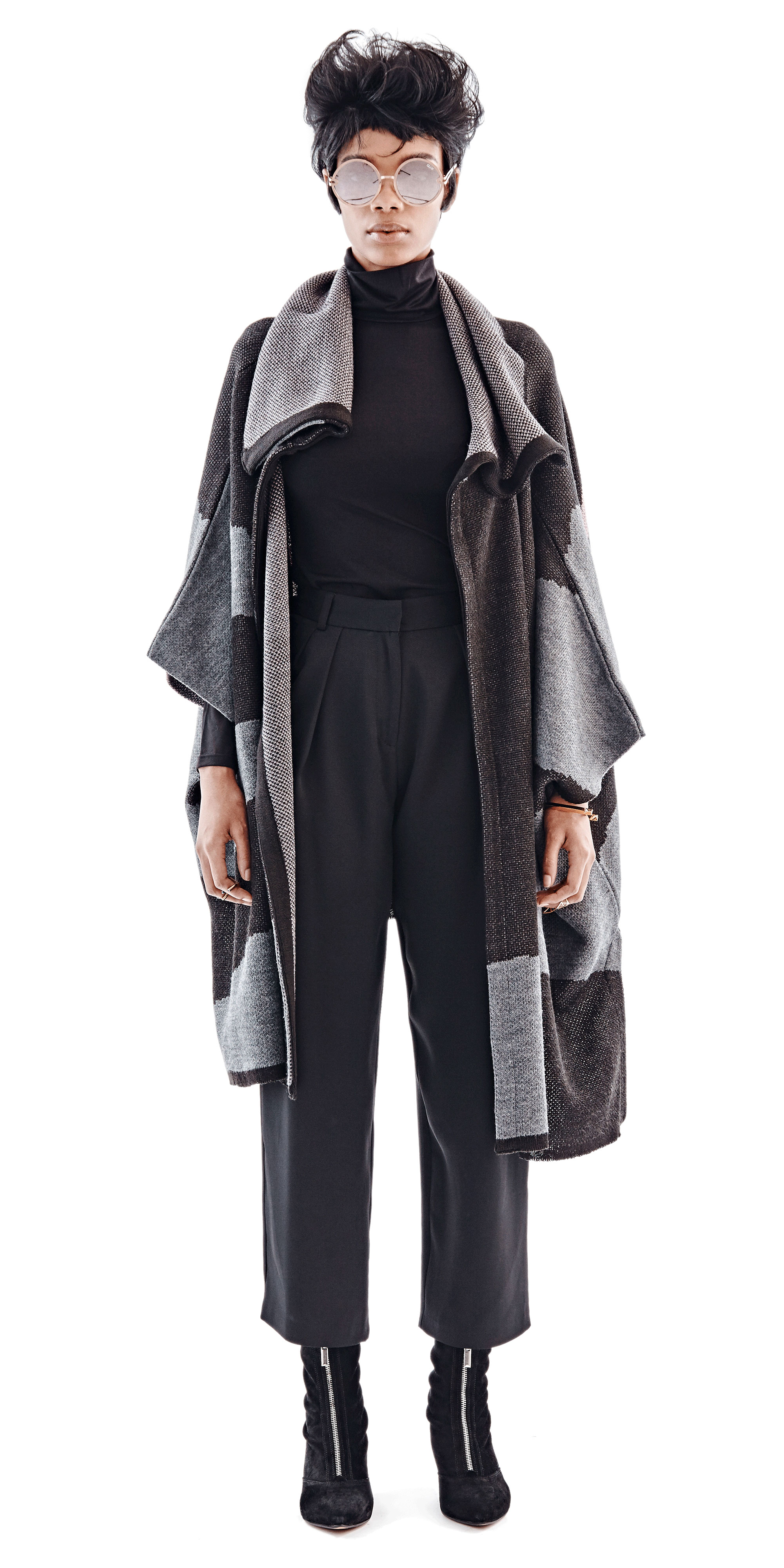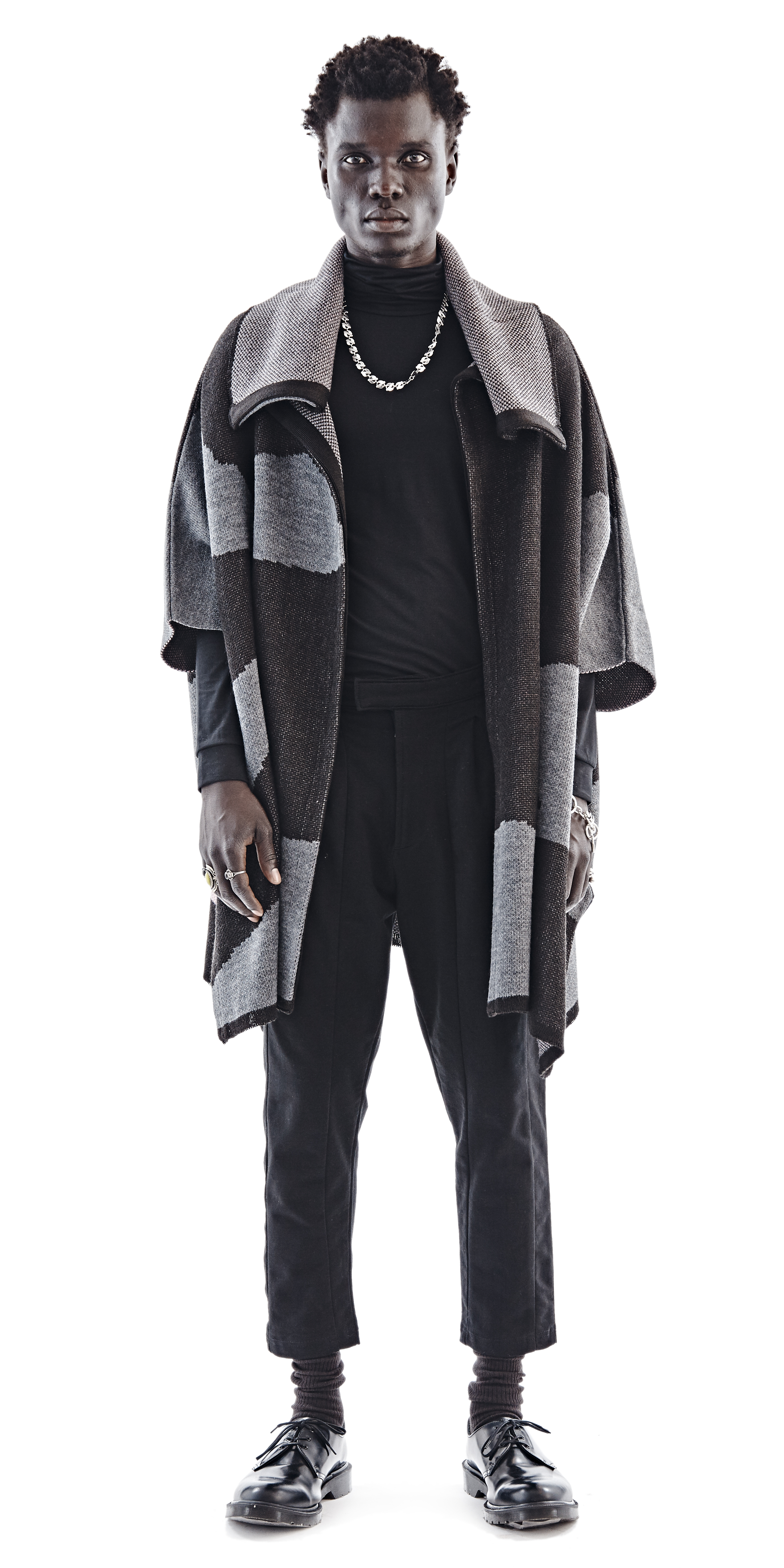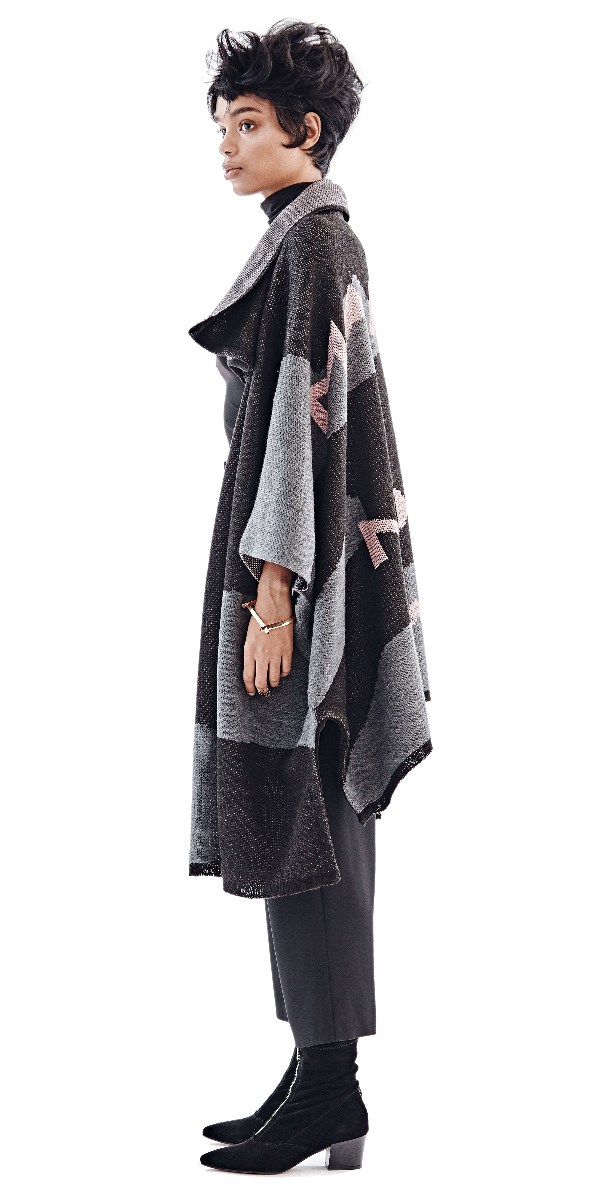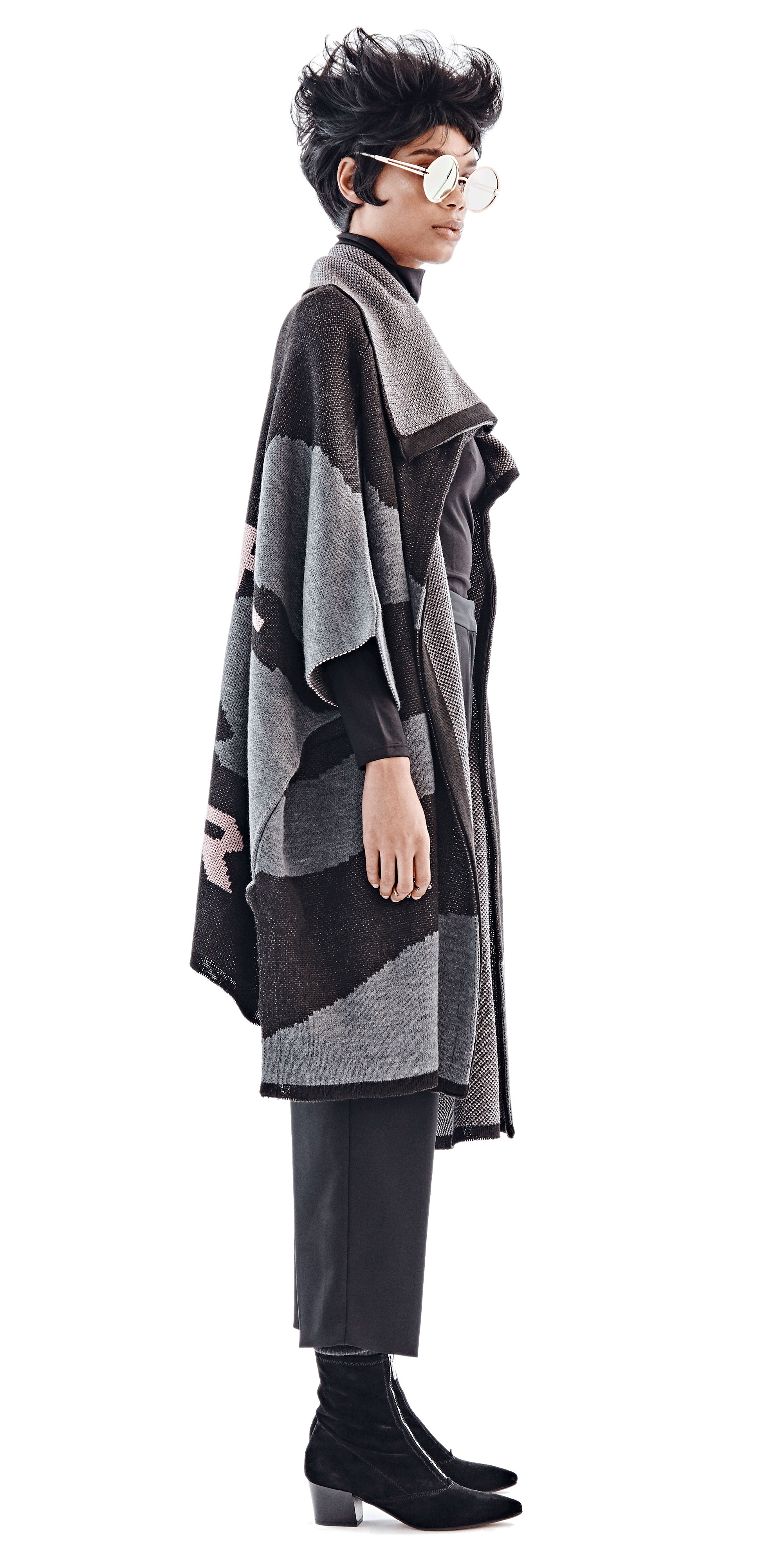 Chulaap Charcoal "Make Art Not War" Poncho / heavyweight knit / Dusty Pink "Make Art Not War" Print at back / 100% acrylic / made in Cape Town, South Africa